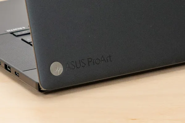 見えにくいですが、天板の左下には、ASUS ProArtのロゴと文字が入っています。