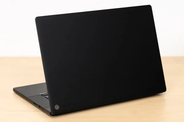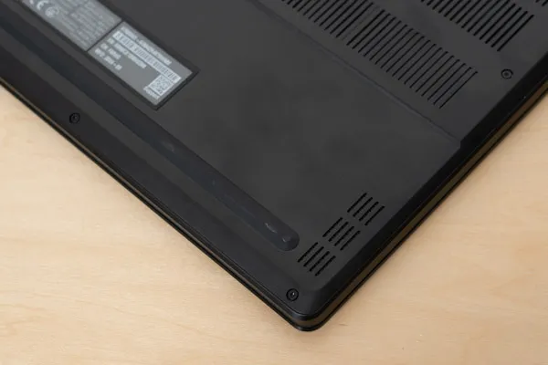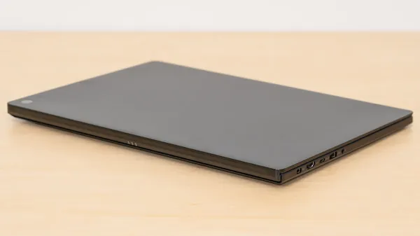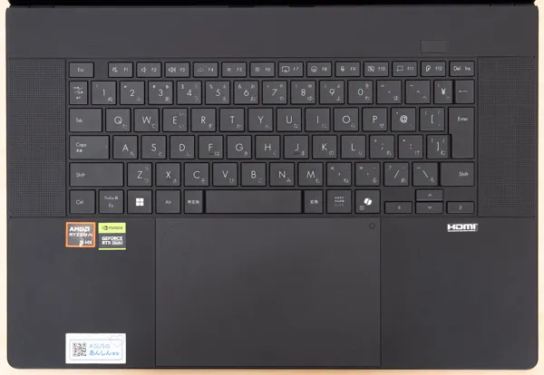 薄型ボディで、キーボードの両側には大き目のスピーカーグリルがあり、見た目がMacBook Pro 16インチに似ています。ボディカラーは、ナノブラックで無難な色です。