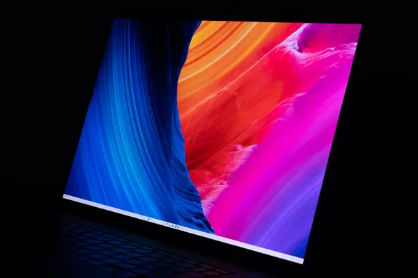 ディスプレイは、高解像度・広色域の有機ELを搭載しています。上位モデルは、低反射仕様となっているので、映り込みが低減されており作業がしやすいです。