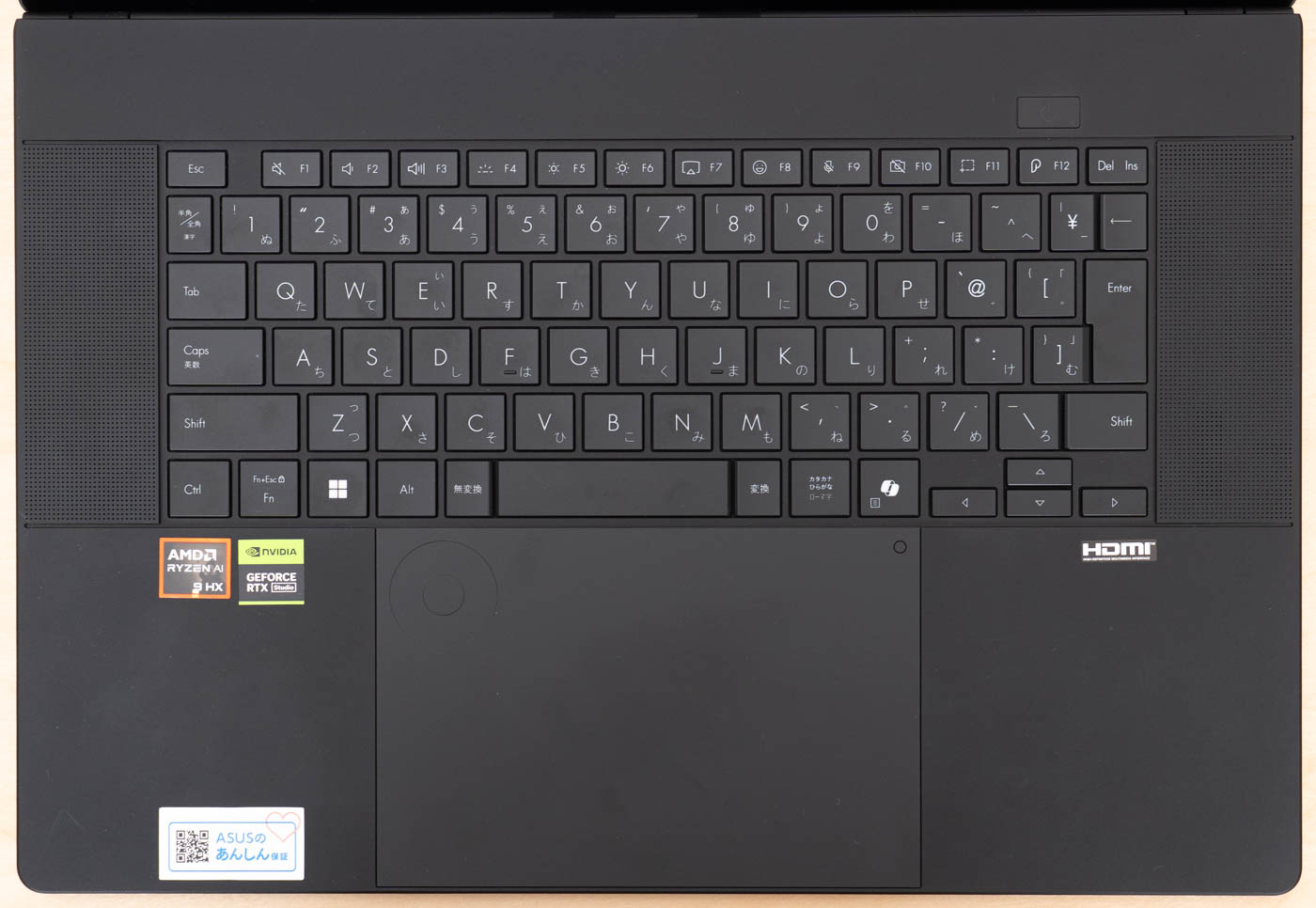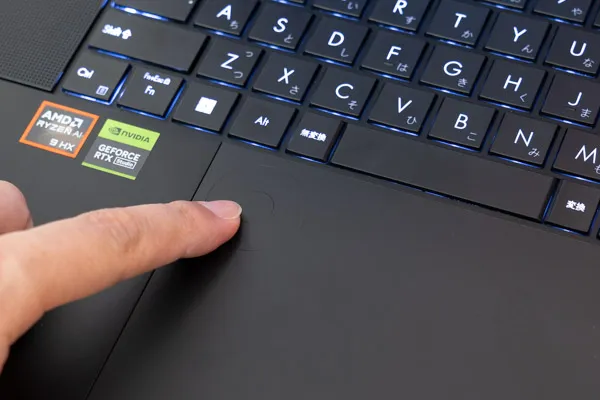 タッチパッドの左上には、ASUS Dialがあり、指でくるくる回して、クリエイター向けソフトの各種調整などを行うことができます。