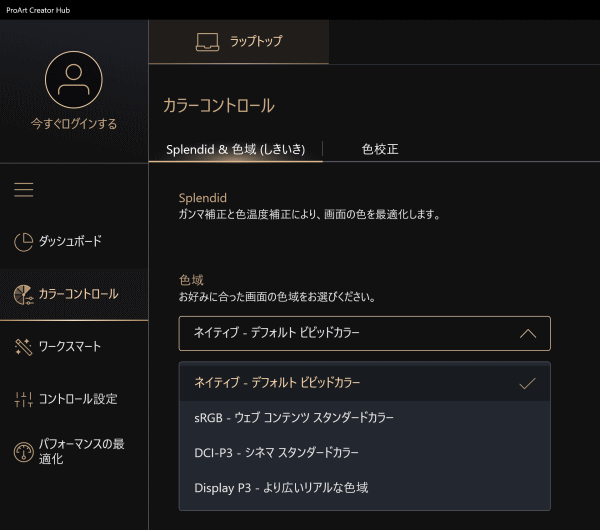 なお、ProArt Creator Hubのソフトから色域を変更することも可能です。
