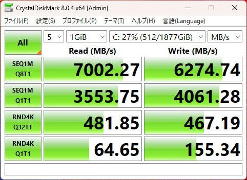 ストレージには、PCIe Gen4 SSDを搭載しており高速です。