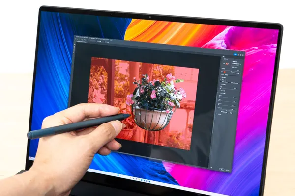 ASUS ProArt P16(H7606)のディスプレイは、タッチ操作およびペン入力にも対応しています。オブジェクトの選択をするときなど、ペンがあると細かい部分の操作が可能なので便利です。