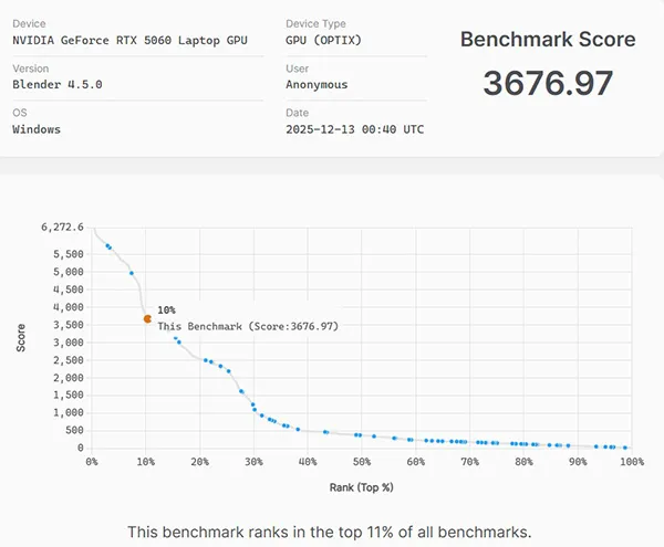 3DMarkのベンチマークスコアはご覧の通りです。最新世代のミドルクラスを搭載しており、従来のGeForce RTX 4070 Lptopとほぼ同等のスコアが出ています。軽めのゲームから重めのゲームまで幅広くプレイできる性能です。