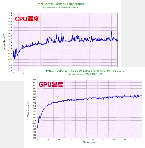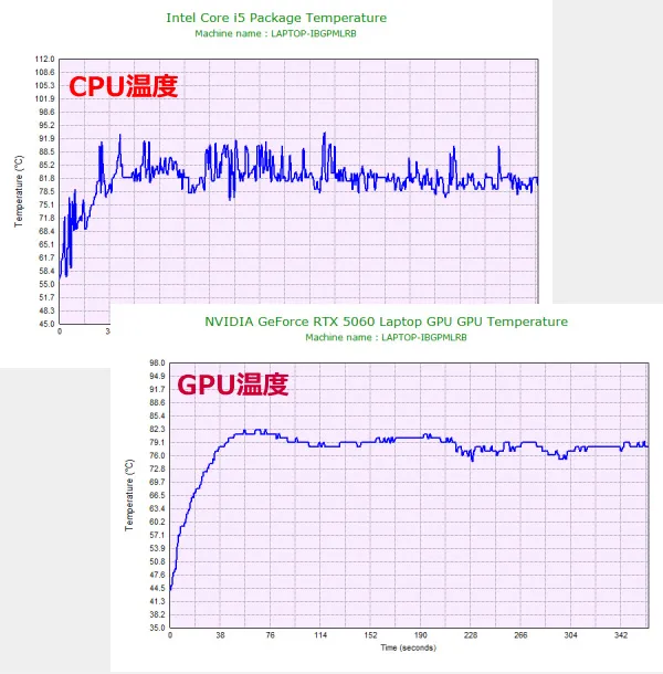 ゲームでは、どちらのモードも、問題ない範囲の温度でした。