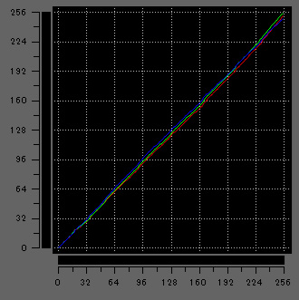 ガンマ補正曲線を確認すると、どの色も揃って1:1の直線になっており、自然な発色であることが分かります。