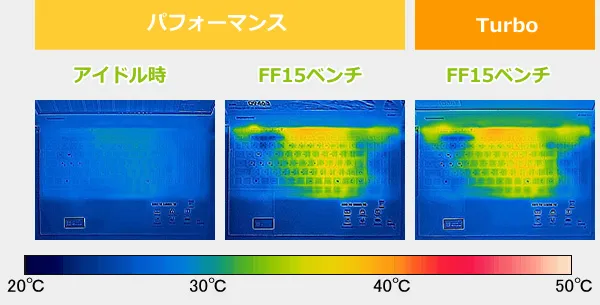 | FF15ベンチ時 (Turbo) | 約58dB |
