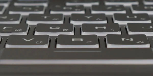 イェーガーグレーというカラーで、キーボードバックライトをオフにすれば、普通のノートPCと同じようなシンプルな見た目です。