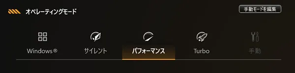 ただし、Turboモードだと冷却性能が高い分、動作音もかなり大きいので、ゲームに集中したい時はパフォーマンスモードにした方がいいでしょう。