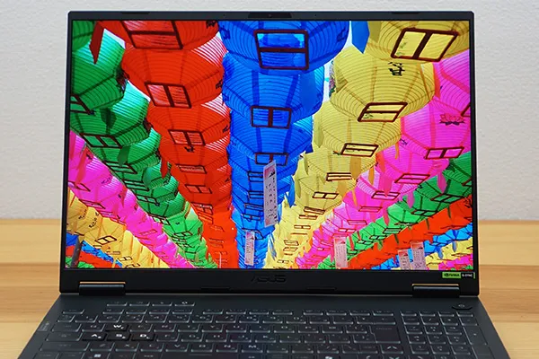 ディスプレイは、16型、1920×1200ドット、100% sRGBクラスの色域で、映像が綺麗です。また、165Hzの高リフレッシュレートにも対応しているので、残像の少ない滑らかな映像でゲームをプレイできます。ゲームやクリエイティブな作業にも使えるディスプレイです。