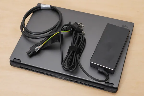 本製品は、持ち運びに便利なゲーミングノートPCということで、外出時は100W PD充電器を使いたい方もいるでしょう。