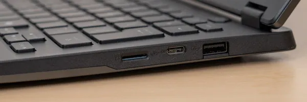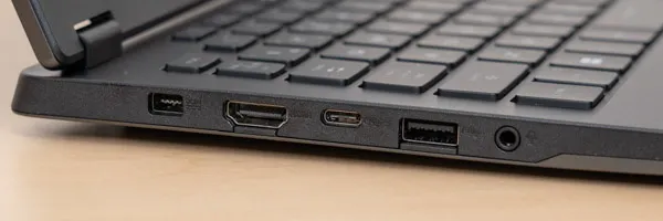 側面のポート類は下図の通りです。USB-Cは左右に1つずつあります。左側面がUSB4で、Power Deliveryおよび、映像出力に対応しています。右側面はUSB3.2 Gen2で映像出力のみ対応です。