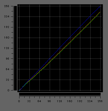 ガンマ補正曲線を確認すると、赤と緑の色が、明るめに表示されていることが分かります。ただ、個体差もあると思います。画像編集などで使うなら、キャリブレーションしてもいいでしょう。