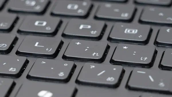 タイピングをした感じでは、底付きの衝撃も少なく、キートップもやや湾曲しており、比較的打ちやすいキーボードでした。ただ、「半角/全角」キーや「\」キーがやや小さいです。