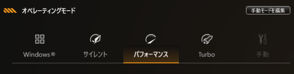 ただ、「Turbo」モードにすると動作音がうるさいので、基本的には「パフォーマンス」モードで使用することをおすすめします。