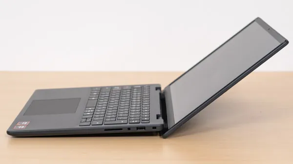 側面のポート類です。フルサイズのSDカードスロットが搭載されているのはいいと思います。USB-Cは10Gbpsで、Power DeliveryおよびDisplayPort 1.4に対応しています。HDMIは1.4なので、4K/60Hzには対応していません。