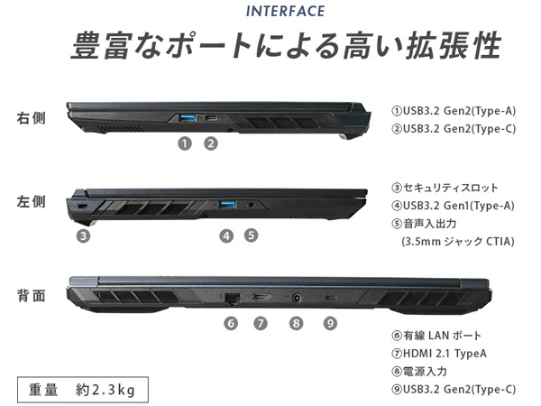 | ディスプレイ | 15.6インチ 非光沢 2560x1440 165Hz |