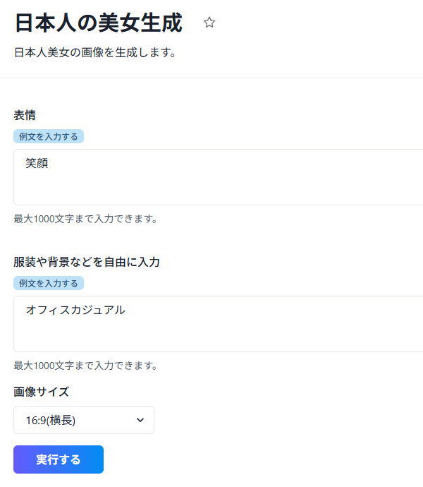 「日本人の美女生成」を試してみましょう。