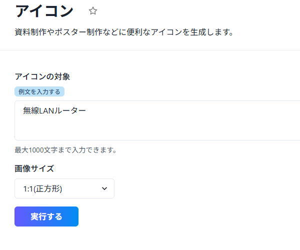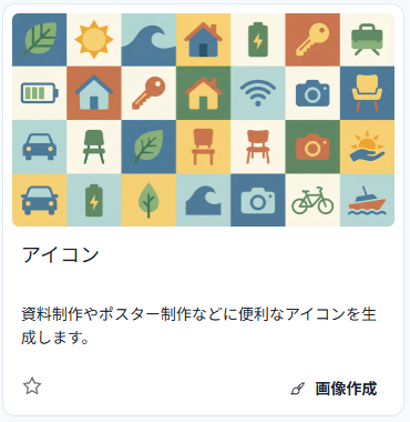 別の画像生成を試します。個人的にお気に入りなのがこの「アイコン」ツール。