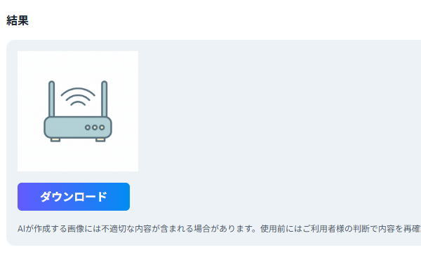 「無線LANルーター」などと入力してアイコンを生成することで、ネットワーク図などに使えるアイコンを生成することができます。何かの説明資料を作る時に重宝しそうです。