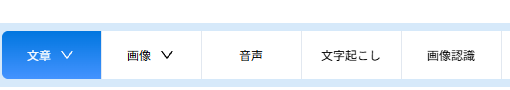 例えば、「機能」を選んだ場合は、「文章」「画像」「音声」「文字起こし」「画像認識」から目的のものを選びます。