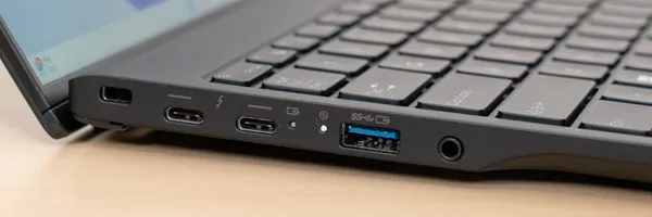 ポート類はご覧の通りです。Thunderbolt4のポートが2つあり、いずれもPower DeliveryおよびDisplayPort Alt Modeに対応しています。