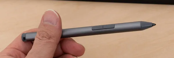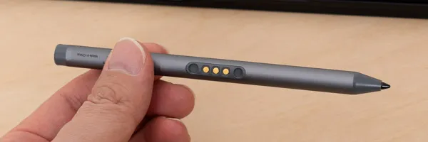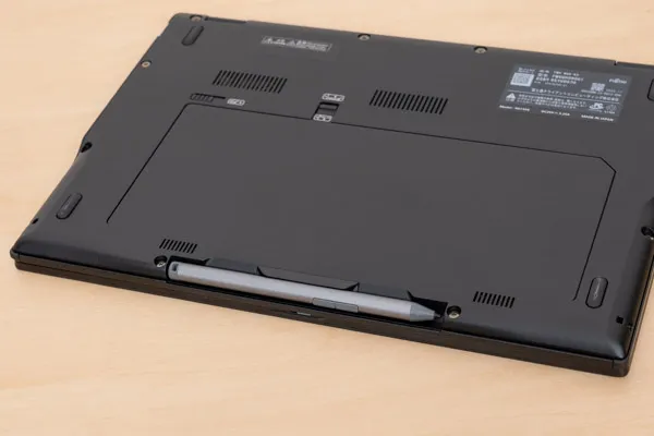 このペンは、PC本体の正面側に収納可能なので、持ち運びに便利です。また収納することでペンの充電もできます。