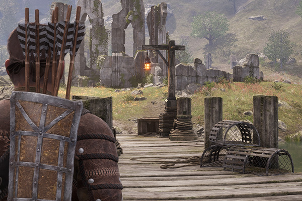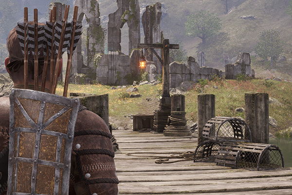 「TES IV: Oblivion Remastered」では、陰影表現が少し変化し、キャラクターの装備のディテールや手前に配置された漁獲器の網目模様まで、より鮮明に描写されています。