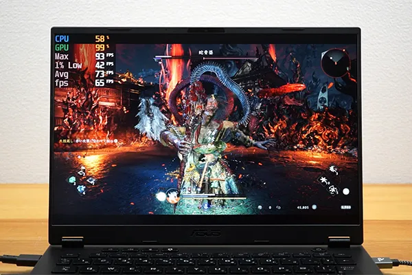 「仁王3」や「モンハンワイルズ」などの最新のゲームでは設定を下げることで快適にプレイでき、「FF16」や「サイバーパンク」などのやや重めのゲームでは高い設定でも非常に快適にプレイすることができました。さらにフレーム生成を有効にすることで、高いフレームレートでのプレイも可能です。基本無料タイトルの「アークナイツ:エンドフィールド」では、最高設定でも快適に動作し、『鳴潮』や『原神』についても問題なく快適にプレイできるでしょう。