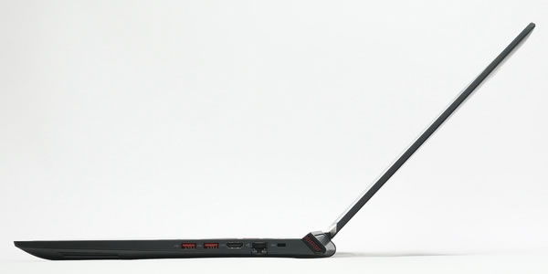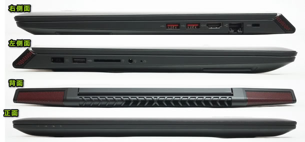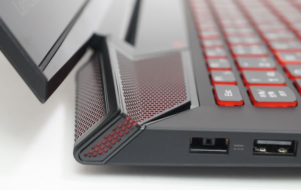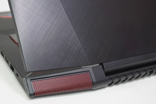 ゲーミングノートでありながら薄型で、赤いキーボードとスピーカーがかっこいいです。