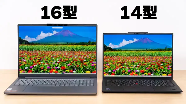 - 16型の大きめの画面