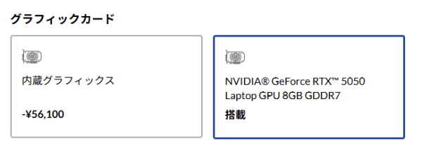 また、GeForce RTX 5050 Laptopの独立GPUを搭載したモデルもあります。動画編集などもする方は、こちらのGPUを搭載してもいいでしょう。