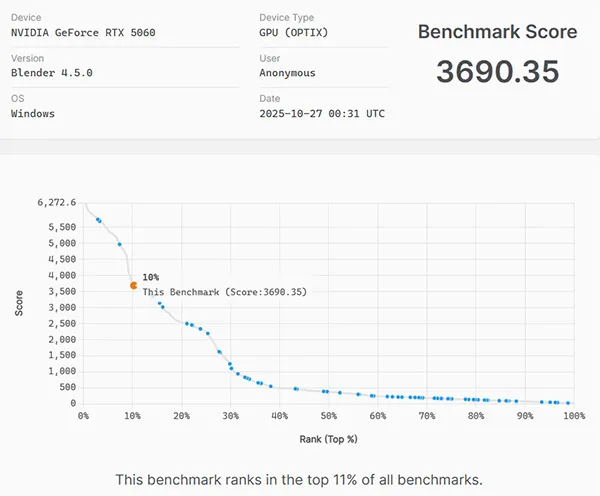 グラフィックボードはいくつか選べますが、今回はGeForce RTX 5060を搭載したモデルで計測しています。3DMarkのスコアは下記の通りです。従来のGeForce RTX 4060と比較すると、約30%スコアがアップしています。