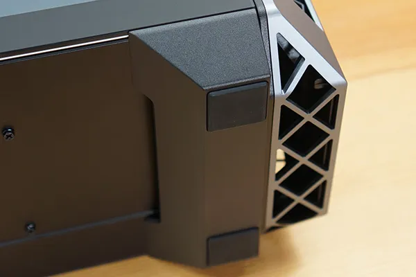 特徴的なフロントパネルは、サイドに格子状の吸気口が設けられており、隙間から見えるRGBファンがカッコいいです。