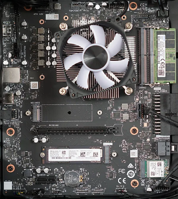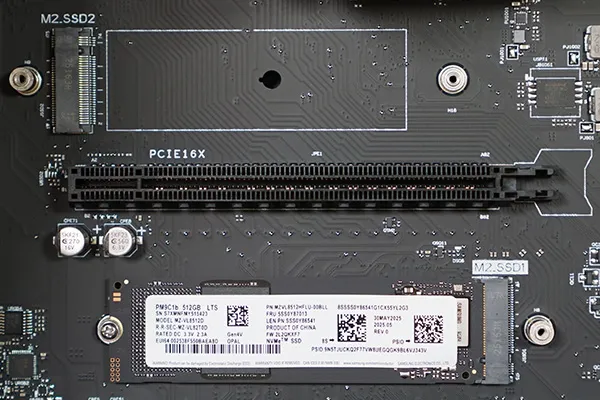M.2 SSDもSamsung製でした。ヒートシンクは貼られていません。上に空きのM.2スロットがあるので、こちらもあとで増設することが可能です。