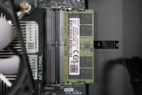 メモリはSamsung製、ノートPC向けのメモリが採用されています。あとで増設も可能です。