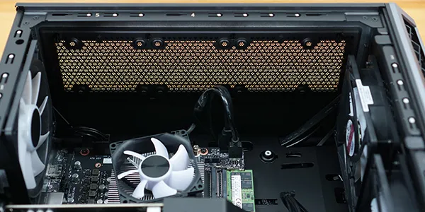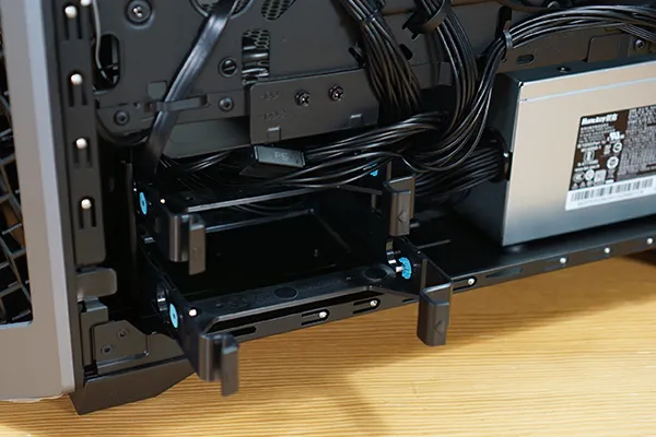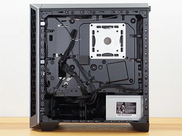 ケース内部はご覧のようになっています。 電源ユニットが別の区画に配置されているため、ケーブルはすっきりしています。