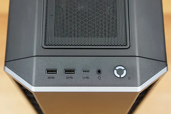 左から、USB 3.2 Type-Aが2ポート、USB3.2 Type-Cが1ポート、ヘッドホン、電源ボタンがあります。