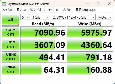 ストレージは、標準で512GBのPCIe Gen4 SSDを搭載しており、アクセス速度は非常に速いです。