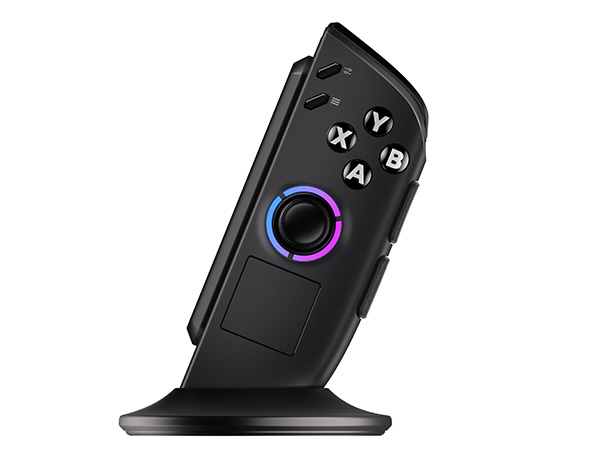 右側のコントローラーは、丸いスタンドの上に装着することで、スティックタイプのコントローラーとして使うことができます。マウスの代わりとしてFPSゲームなどもできる、とありますが、従来機種で試した限りでは、FPSゲームをするときは素直にマウスを使ったほうがいいです。
