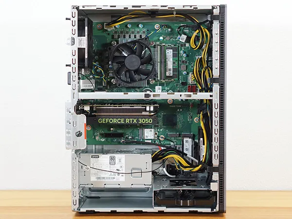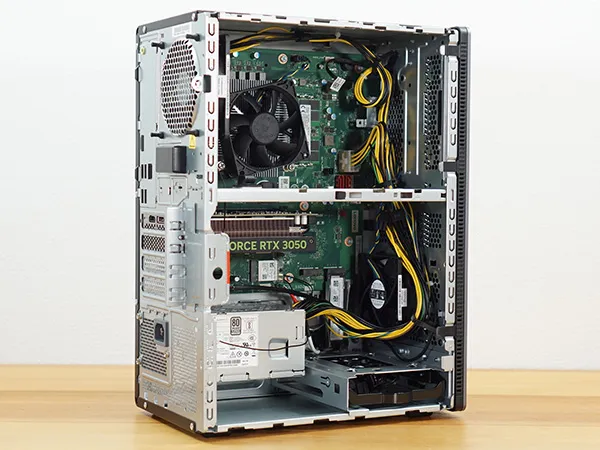 ノート向けCPUにロープロファイル・補助電源不要のRTX 3050を搭載しているので、一般的なゲーミングPCよりも省電力です。
