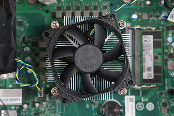 CPUクーラーは小型の空冷ファンです。とは言っても、ノート用のCPUなので、デフォルトのバランスモードであれば、問題なく冷えます。