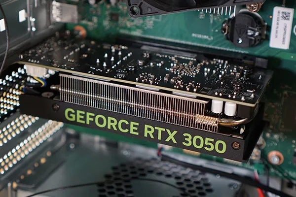今回搭載されていたGeForce RTX 3050です。ロープロファイル・補助電源不要のタイプで、小型で省電力です。メーカーは不明です。