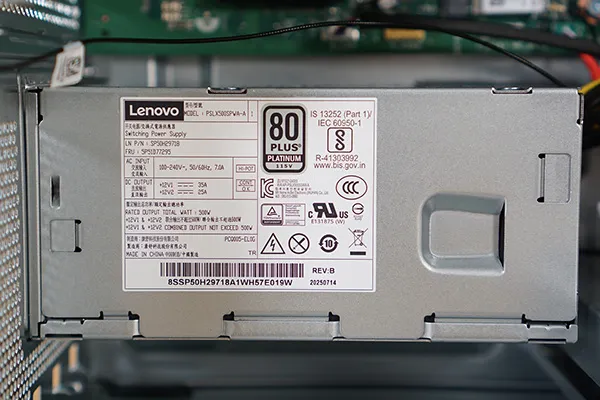 電源ユニットも小型で、容量は500W(80PLUS PLATINUM)です。