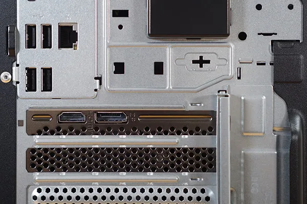 正面と背面です。映像端子は搭載するグラボによって変わります。