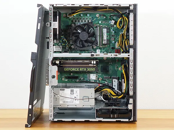 LOQ Tower 17IAX10は、小さいケースながらも空きのM.2スロット×1、3.5インチシャドウベイと、拡張性も確保されています。