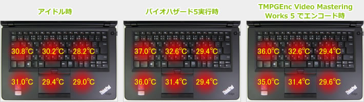右図:TMPGEnc Video Mastering Works 5 でエンコード時の表面温度(x264、解像度1280x720でエンコード)