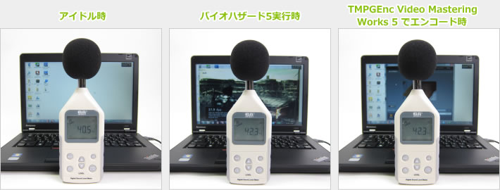 右図:TMPGEnc Video Mastering Works 5 でエンコード時の騒音値(x264、解像度1280x720でエンコード)