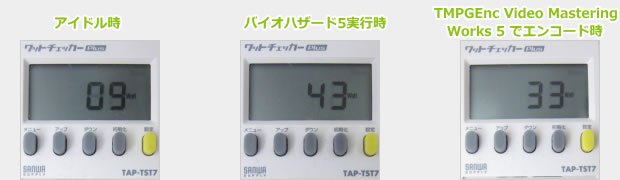 右図:TMPGEnc Video Mastering Works 5 でエンコード時の消費電力(x264、解像度1280x720でエンコード)