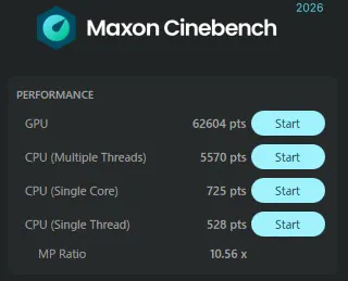 CINEBENCH 2024のスコアは下の通りです。